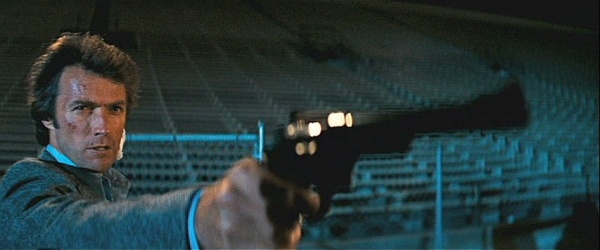 Vamos agora voltar a duas outras obras. Dirty Harry e Se7en. Dirty Harry segue toda uma proposta de visão republicana, de como a justiça acaba se pondo a defender um criminoso (no filme, não é deixado espaço para dúvidas de que aquele é o Scorpio). Ao fim do filme, após o serial killer se pôr como vítima de tortura policial, colocando a credibilidade de Harry em cheque, o personagem de Client se cansa e acaba matando o criminoso, sendo ele, como um Juiz Dreed, polícia, juiz, júri e executor. O filme termina com Harry jogando seu distintivo no rio, se negando a prosseguir a atuar em algo que não acredita mais (o que não impediu uma série de sequências que ignoram esse fato e até mesmo a perspectiva política do primeiro filme).